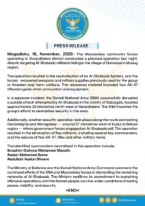 Ciidamada Macaawisleyda ee ka howlgala degmada Xarardheere ayaa xalay fuliyay howlgal si gaar ah loo qorsheeyay, kaasi oo si toos ah loogu beegsaday malleeshiyaad Khawaarijta ka tirsan oo ku dhuumaaleysanayay tuulada Dumaaye ee gobolka Mudug.