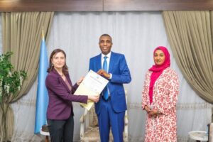 Ugu dambeyn, Ra’iisul Wasaaraha oo ay wehelinaysay Wasiirka Qoyska iyo Xuquuqul Insaanka, Marwo Khadiija Maxamed Al-Makhsuumi, ayaa Danjiraha guddoonsiiyay shahaado sharaf muujinaysa doorka UK ee garab istaagga Soomaaliya.