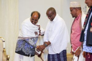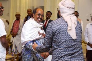 Madaxweynaha Jamhuuriyadda Federaalka Soomaaliya, Mudane Xasan Sheekh Maxamuud ayaa hoyga uu ka degan yahay magaalada Laascaanood ku qaabilay, wafdi ka socda Dowladda Jabuuti oo ka qeyb galaya Munaasabadda caleemo-saarka madaxda la doortay ee Dowlad Goboleedka Waqooyi Bari Soomaaliya.