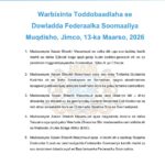 10- Wasaaradda Cadaaladda iyo Arrimaha Dastuurka Soomaaliya ayaa soo saartay liiska Nootaayooyinka ka diiwaangashan Wasaaradda sannadkan 2026, kuwaas oo buuxiyey shuruudaha iyo habraacyada u degsan diiwaangelinta Nootaayooyinka dalka.