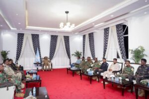 Madaxweynaha Jamhuuriyadda ayaa Shirka warbixinno faah faahsan uga dhageystay Taliyeyaasha Ciidamada Qalabka Sida iyo Saraakiisha hay’adaha ammaanka, kuwaasi oo soo bandhigay qorsheyaasha lagu sugayo amniga deegaanka, dardargelinta howlgalada ka dhanka Khawaarijta iyo kor u qaadidda wada shaqeynta hay’adaha kala duwan ee amniga.